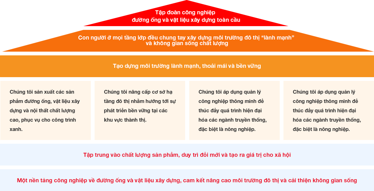 Để đạt được điều này, chúng tôi sẽ tập trung vào ngành đường ống đồng thời không ngừng mở rộng sang lĩnh vực vật liệu xây dựng, trang trí nội thất, bảo vệ môi trường và nhiều lĩnh vực khác. Chúng tôi sẽ đón nhận đổi mới công nghệ như một phương tiện để đưa vẻ đẹp lan tỏa vào tương lai mà chúng ta hằng mong đợi.